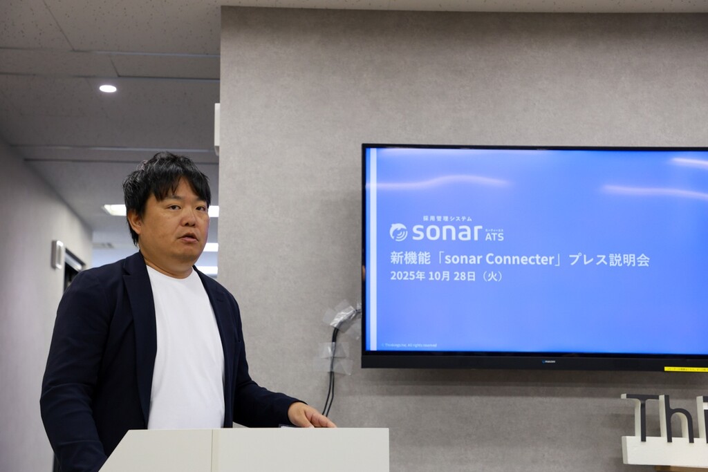 組織づくりのプラットフォーム「sonar HRテクノロジー」を展開するThinkings株式会社は、採用管理システム「sonar ATS」に新機能「sonar Connecter(ソナ―コネクター)」を追加し、そのプレス説明会を2025年10月28日(火)に開催した。説明会では、「sonar Connecter」開発の背景やサービスの詳細に加え、近年注目されている“静かな退職”の一因とされる「埋もれ人材」(能力を十分に発揮できていない人材)に関する1,000人規模の調査結果が発表された。さらに、ゲストとして人事コンサルタントの曽和利光氏(株式会社人材研究所 代表取締役社長/Thinkings組織再考ラボ フェロー)を迎え、同社 新規事業開発責任者の森田徹氏とともに、調査結果をもとにしたトークセッションが行われた。