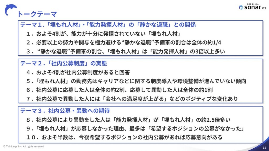 また、社内公募の仕組みは「埋もれ人材」に能力発揮の機会を提供することで、“静かな退職”予備軍の減少につながる可能性があることも示唆された。