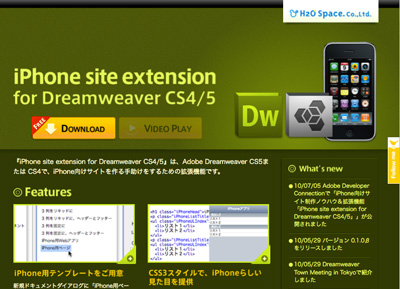 | 「iPhone site extension for Dreamweaver CS4/5」開発元 エイチツーオー・スペースのWebサイト |