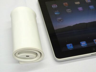 今回のFlexible Keyboardは、なんとワイヤレスなのだ。Bluetooth接続だから、iPadでもiPhoneでも快適な文章入力ができる。おまけに、移動時や未使用時はくるくる巻いて収納が可能だ。防水ではないが、濡れた手での入力程度ならOKだぞ。