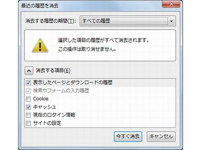 ●Firefox 3.6の履歴や一時ファイルを削除する