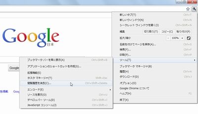 ●Google Chromeの履歴や一時ファイルを削除する