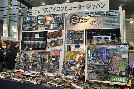 エムエスアイコンピュータージャパンのブースでは、同社が開発したマザーボードを一同に展示していた。