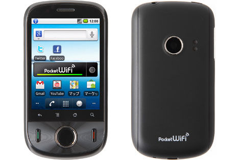 「Pocket WiFi S」は、音声通話機能とAndroid 2.2を搭載したWi-Fiルーターだ。Android 2.2搭載端末としては国内最安となる端末価格1万9,800円(税込み)での提供と、国内最軽量の重さ約105gサイズを実現した。