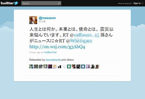・3日間で髪の毛が伸びた? 孫さん 3日間の沈黙を破りTweet