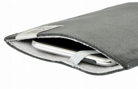 本製品は、なめらかでぬくもりのある特殊素材、東レのエクセーヌを採用した4.3インチポーチだ。iPhone 4 /iPhone 3GS / iPhone 3G / iPod touch や4.3インチサイズのスマートフォンに対応する。カバーを装着していても収納できる。