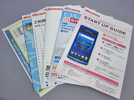 本体購入時に、「Xperia START UP GUIDE」などの小冊子がもらえる。オプションプランの選択の違いで、もらえる冊子は異なるのだろう。