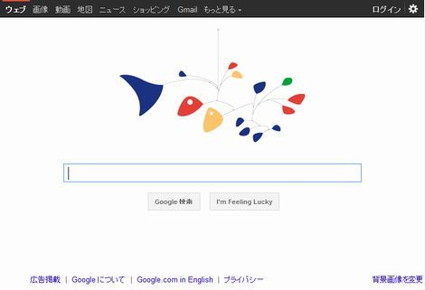 Googleロゴをクリックすると、「アレクサンダー カルダー」という言葉が検索される。グアレクサンダー・カルダー氏は、米国の彫刻家であり、動く彫刻「モビール」の発明と制作で知られている。Googleロゴは、モビールというわけだ。
