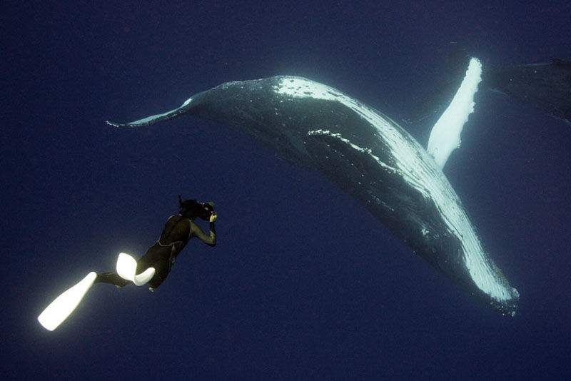 単に人を知らないということではないそうで、同じ種類のイルカでも場所によって慣れていたり、慣れていなかったりするという。海の生き物たちの警戒心がない海域を選ぶことで、このような人懐っこい仕草の生き物たちを撮影できたのだ。