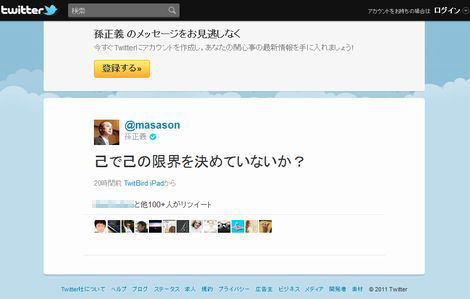 ソフトバンクグループの代表 孫正義氏は、東日本大震災にともなう原発事故以来、Twitterを通じて活発な発言をしている。そんな同氏の格言的な発言が話題となっている。