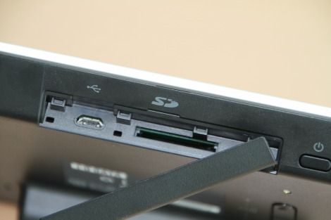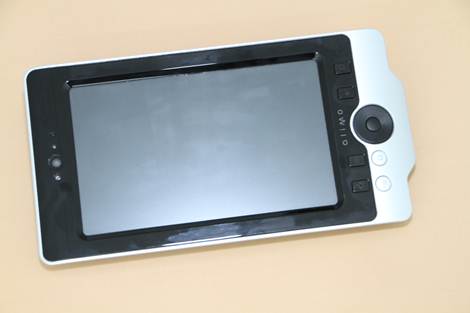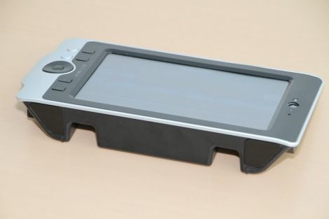正面からの見ためは、お洒落なタブレット端末といった感じだ。Skype等で使えるフロントカメラを備える。