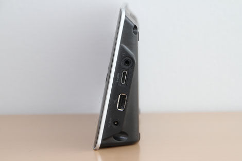 右側面には、3.5mmミニジャック(ステレオ)、HDMI端子、ホスト機能を備えたUSBポート、ACコネクタが見える。