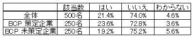 この結果は、東京都・神奈川県・埼玉県・千葉県の1都3県の社員数100 名以上の、BCP(事業継続計画)策定企業とBCP 未策定企業の総務担当者各250名、計500名を対象に、「震災時のトランシーバー使用」に関するアンケート調査で明らかになったものだ。