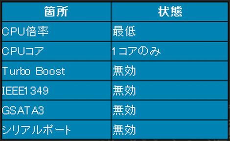ユーティリティを実行すると、以下の状態にマザーボードを自動設定し、高負荷時の消費電力を削減してくれる。