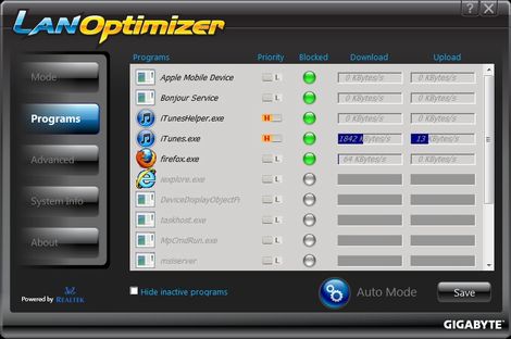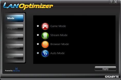 LANオプティマイザーはGIGABYTE公式ホームページからダウンロードして使用することができる。