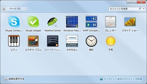 | 画面2 アンインストールしたガジェットが復活した! これで再度使えるようになる。 |