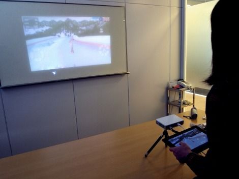 この「QUMI」は、ただ小さいだけではない。本体には、MINI HDMI端子が搭載されているので、MINI HDMIケーブルでブルーレイディスクプレイヤーやゲーム機など多彩な機器を接続して、プレゼンやデモンストレーションのビジネス利用だけでなく、ホームパーティや出先のイベントなどでも利用することができるのだ。