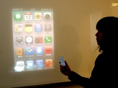 | 別売りのケーブルを使えば、iPhoen画面も投影ができる |