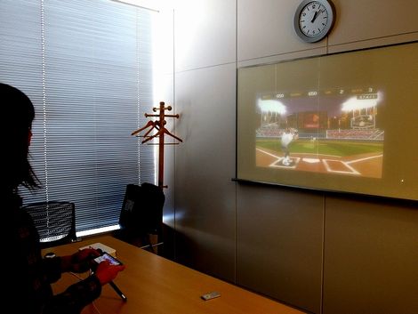 LEDプロジェクターとしては高輝度な300ルーメンのLED光源を採用し、外光や証明を残した室内でも明るく、視認性は非常に高い。同しクラスと比較しても最高レベルの鮮明画像を実現しているのだ。また、ランプ式のプロジェクターのように、利用できるまでのウォームアップも、かたづける際のクールダウンもほとんど必要なく、直ぐに使えて、直ぐに片付けることができる。この機動力が凄い。