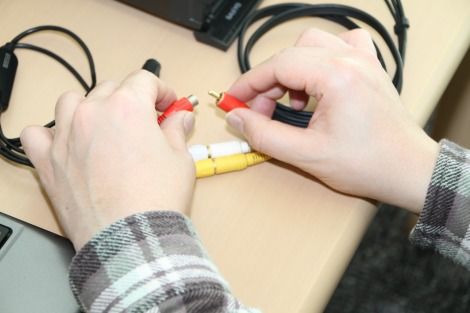 本製品をパソコンのUSB端子に接続したら、市販のAVケーブルでビデオデッキを接続する。