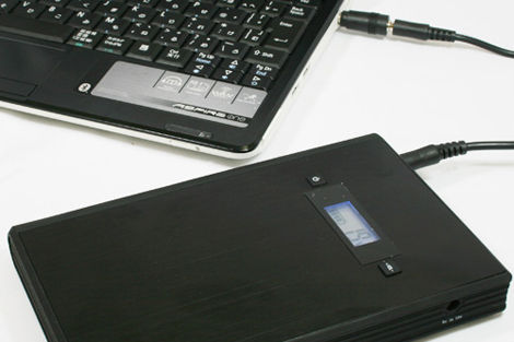 スマートフォンだけでなく、ノートPCにも対応するとなると、容量はできるだけ大きい方が安心できる。本製品は18000mAh/3.7Vと大容量のリチウムポリマーバッテリを内蔵しているため、ネットブックを約4~5時間動作させられる。出張やアウトドアなど、電源の無い場所でノートPCやネットブックを充電するのにぴったりだ。