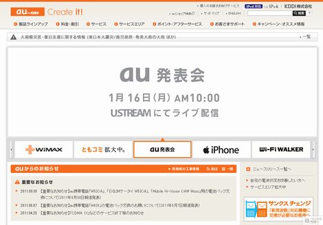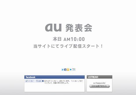 KDDIは本日(2012年1月16日)、同社のau公式サイトにおいて、「au発表会」の模様をライブ配信することを告知している。