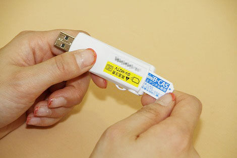 | 「m2TV」本体に付属のmini B-CASカードを本体に取り付ける |
