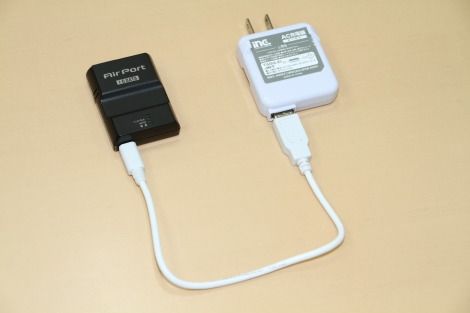 電源を接続する。電源は、パソコンのUSBポートを利用してもよいし、スマートフォンに付属または市販のUSB変換ACアダプターを使用してもよい。