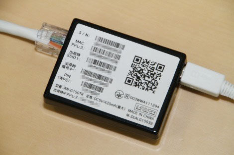 | Wi-Fi通信の高速インターネットができる、ポケットルーター「WN-G150TR」 |