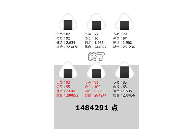 続いて25万ダウンロードされた「おにぎり職人」は、もうちょっと複雑なプレイをユーザに課している。