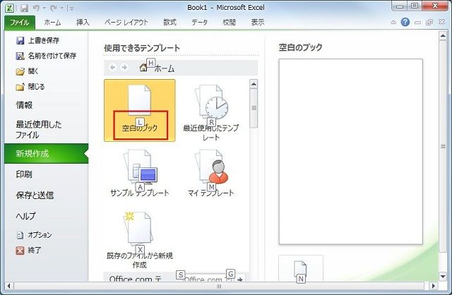 | 画面3 「空白のブック」を開きたいなら、[L]キーを押す。 |