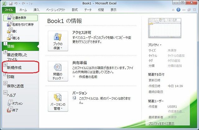 | 画面2 サブメニューにもアルファベットが表示されている。ここでは、「新規作成」の[N]キーを押す。 |