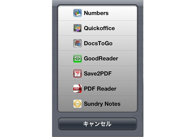| 画面5 Quickofficeなど、Officeファイルを編集可能なアプリを選択する。 |