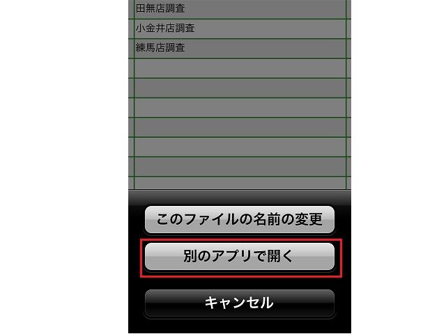 | 画面4 ファイルを編集するなら、[別のアプリで開く]をタップする。 |