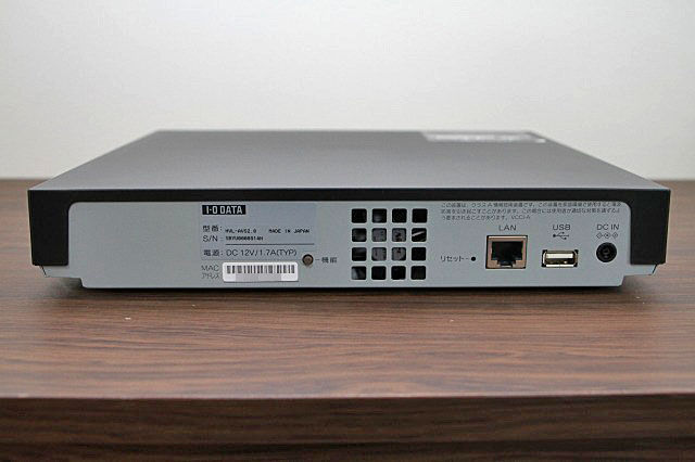 | 左から機能スイッチ、FAN、リセットスイッチ、LANポート、USBポート、電源コネクター |