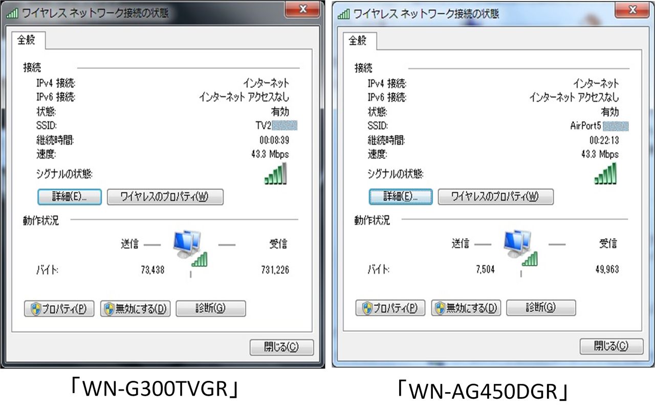 ★「WN-G300TVGR」と「WN-AG450DGR」で比較しました!
