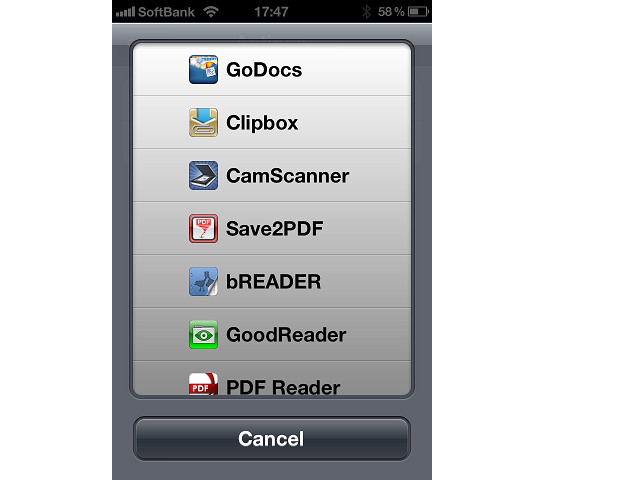 | 画面3 メニューを開いたら、「Opne In...」をタップ。 |