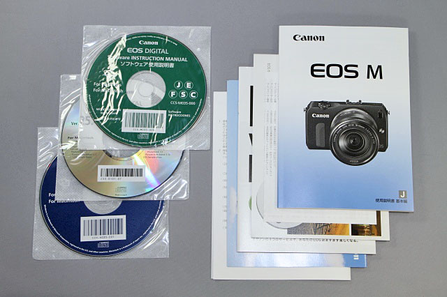 | マニュアル類の下には、「EOS M」本体とレンズ類があった。 |