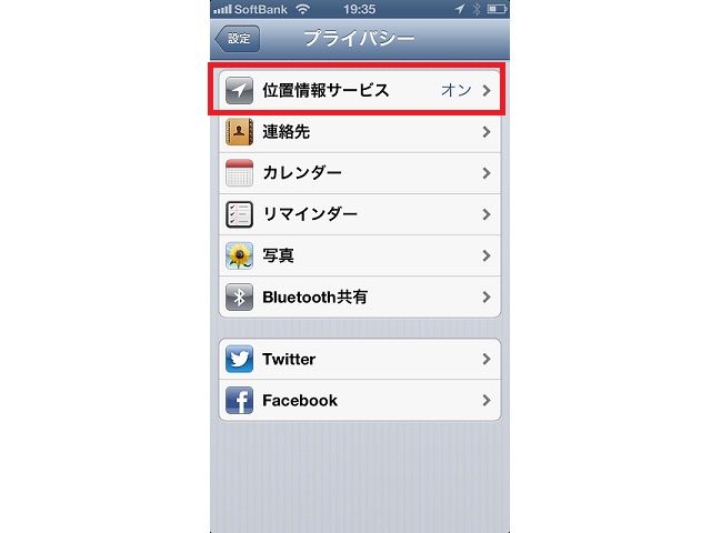 iPhone 5のiOS6には、「プライバシー」機能がある。位置情報や連絡先などプライバシーに関する設定をまとめて管理できる機能だ。例えば、位置情報はアプリごとにオン/オフを設定できる。特に必要ないと思われるアプリの位置情報はオフにしておこう(画面1~3)。