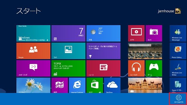 Windows 8にサインインしたとき、最初に開くのスタート画面だ。よく使うアプリのアイコンをここに登録しておけば、すぐにワンタップして起動できるようになる。ストアアプリはもちろん、デスクトップで使うアプリも、ここに登録することが可能だ。