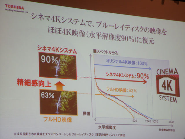 問題はコンテンツだが、4Kで撮影しBlu-rayにした映像を、映像を超解像などの技術の「シネマ4Kシステム」により、精細感を90%まで復元するという。