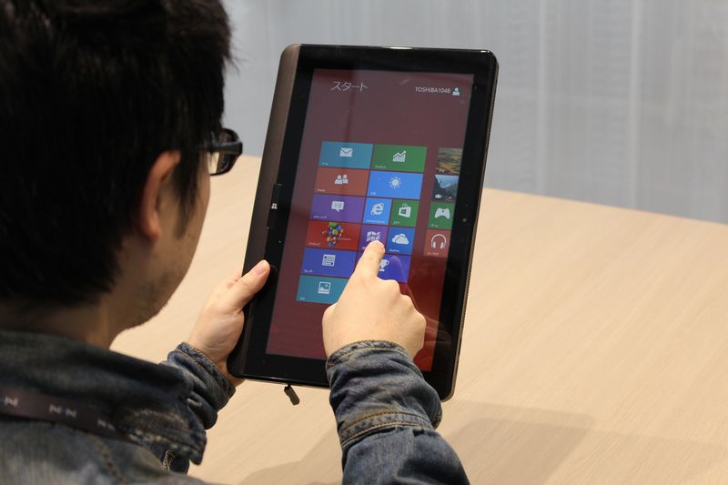 そんななか、2012年10月26日、Microsoftより発売された新OS「Windows 8」は従来のマウスとキーボードで操作するデスクトップ画面だけでなく、iPadやAndroidなどの人気タブレット端末のように画面に直接タッチして操作できるタイル状の新しいインターフェイスが特長となっている。そしてタッチ操作ができる新OS「Windows 8」の特長を活かして、ノートPCスタイルとしても、タブレットスタイルとしても利用ができるコンバーチブルマシンが、PCメーカー各社から相次いで発表され、注目を集めている。