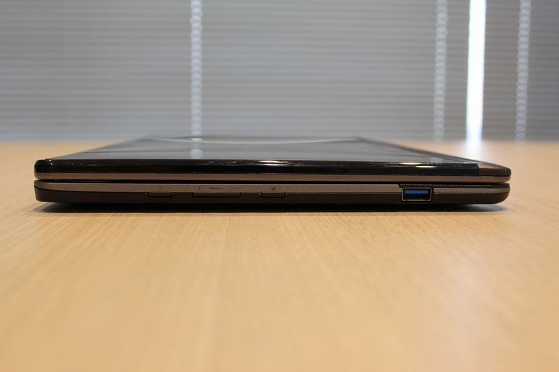 正面向かって左側面に電源スイッチ、ボリュームボタン、オリエンテーションロックボタン、USB3.0コネクタを搭載