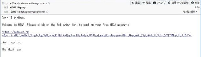 | メールが届くので、記入されているリンク先へブラウザで移動する。 |