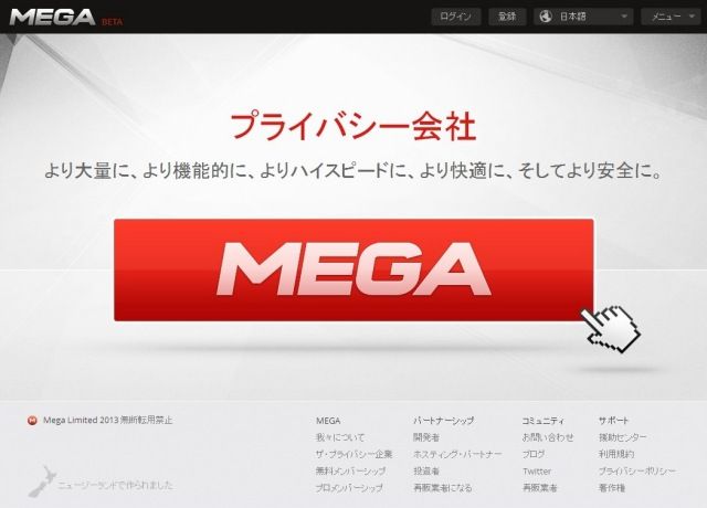 その開設者だったキム・ドットコムが1年後に再びWebストレージのクラウドサービス「MEGA」を立ち上げた。現在はβ版ということだが、無料登録ユーザーでも50GBまでの容量がもらえるというので、さっそく登録してみた。