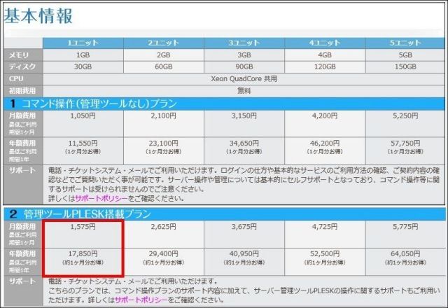 | 契約している月額1,575円の「管理ツールPLESK搭載プラン」 |