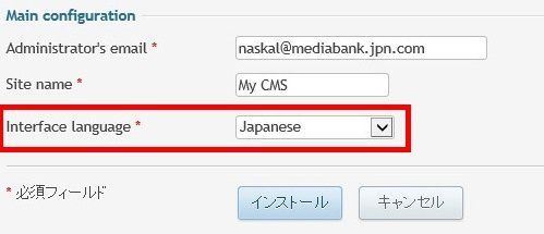 | 「Interface language」を「Japanese」にしたら「インストール」をクリック。 |