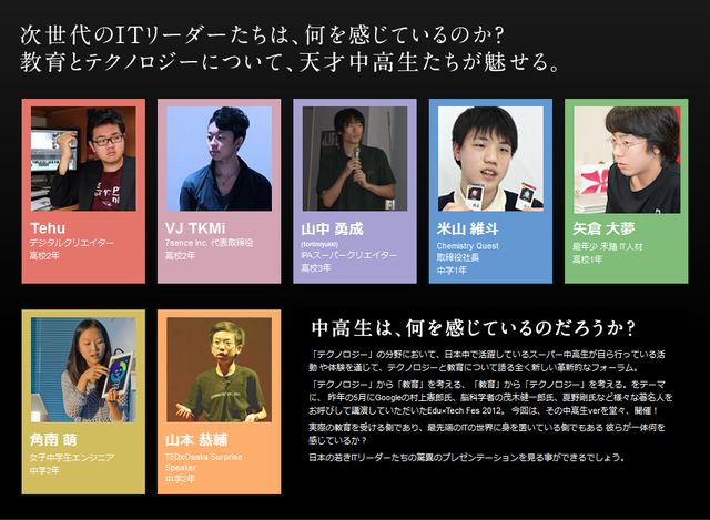 実際に教育を受ける立場にある彼らだからこそ語れる、「日本の教育」そして、テクノロジーの世界に身をおいている彼らが語る「テクノロジー」それらが掛け合わさってどのような化学変化が起きるのか、乞うご期待だ!