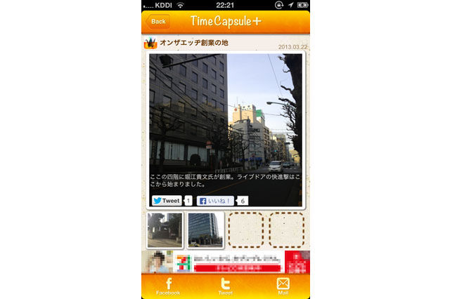 そのほかにも、毎日横を通り過ぎているビルの形がユニークだったり、某有名企業の受付嬢が大人気だったりと、タイムカプセル+があるだけで、隠れた名所や情報を見つけ出せる。人との待ち合わせや、電車が来るまでの隙間時間を楽しく過ごすツールとしても使えるわけだ。