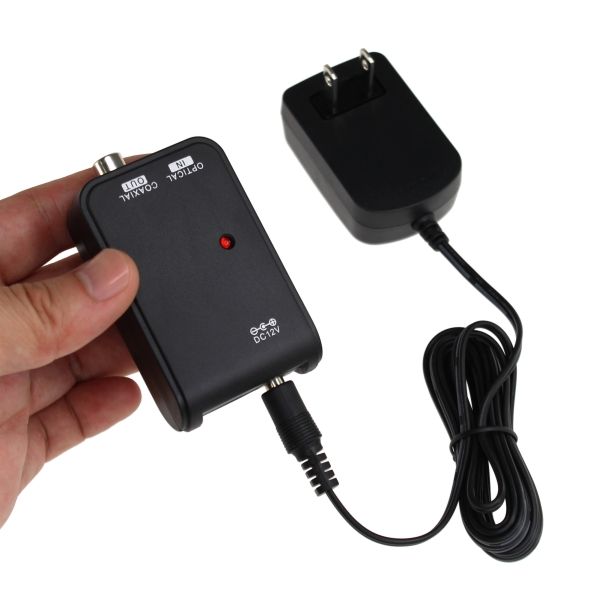 そんなときに便利なのが、上海問屋で販売している光デジタルからコアキシャルへ変換するデジタルコンバーターだ。これを使うとオーディオ機器の入力端子が異なるために接続できない問題が一気に解消してしまう。本体サイズは、22(縦)mm×42(横)mm×70(高さ)mmと手のひらサイズで設置場所を選ばない。接続方法は光デジタルケーブル(別売)、RCA同軸ケーブル(別売)で、本機とデジタルオーディオ機器を接続するだけだ。